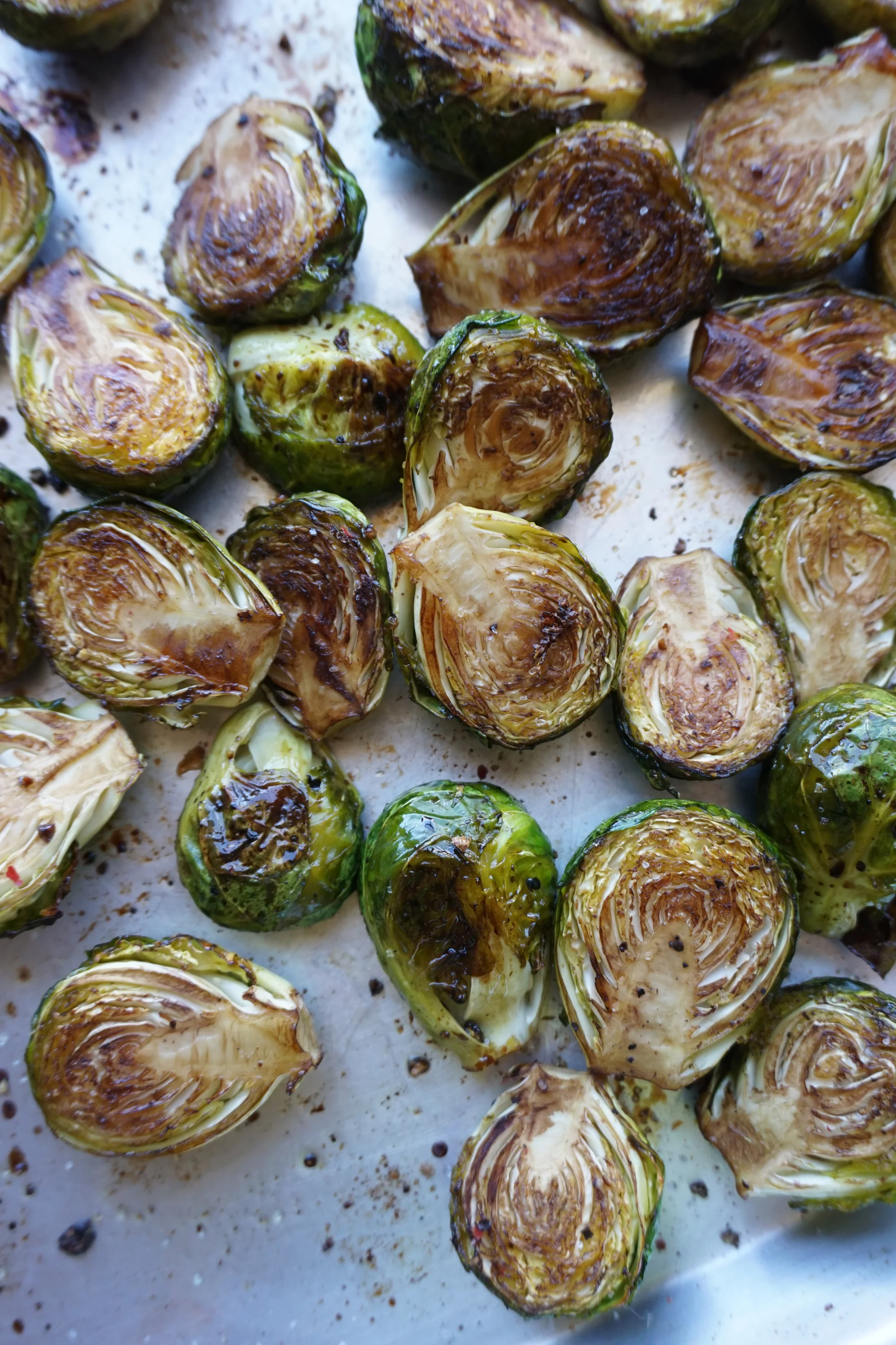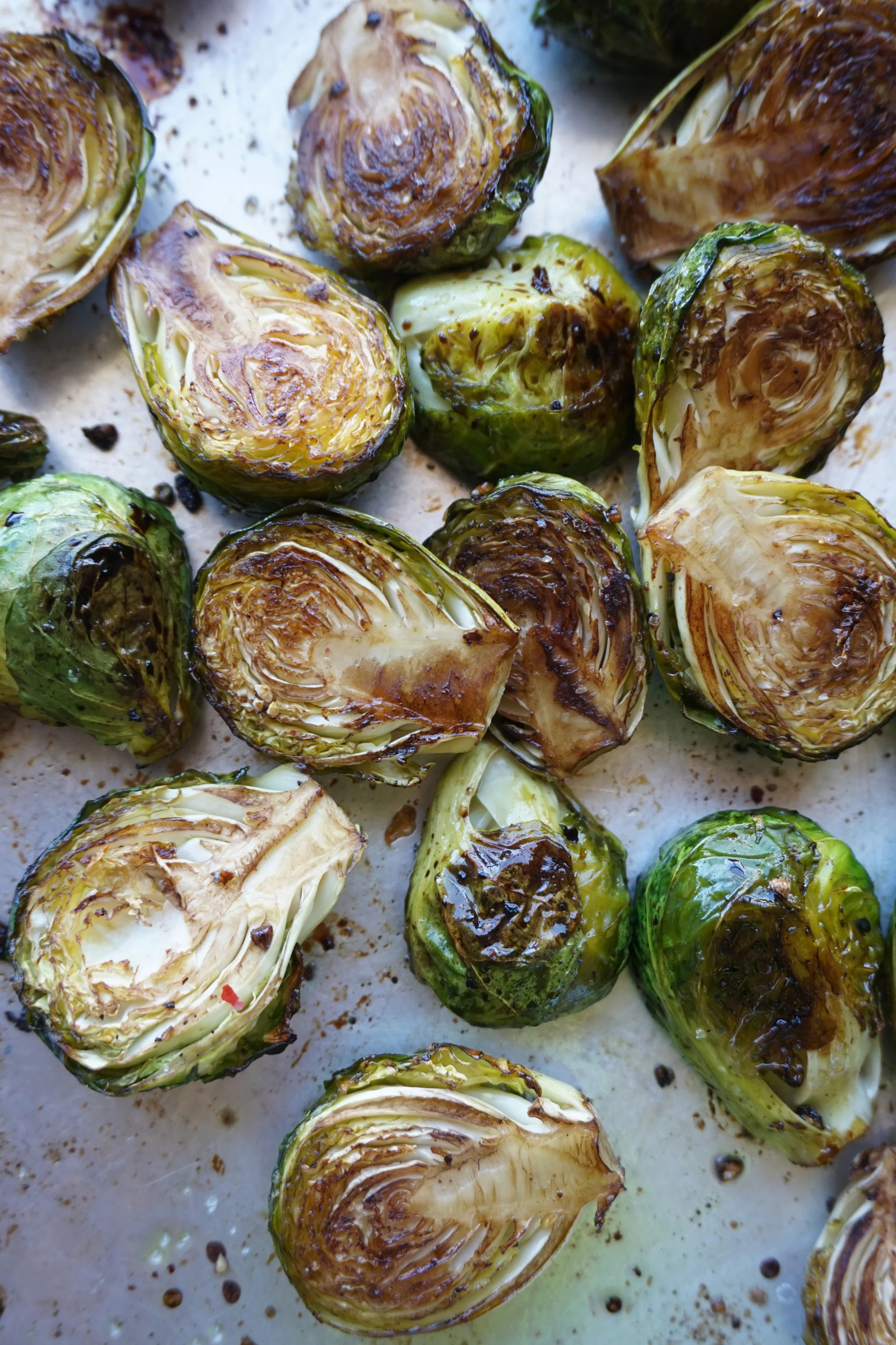 I roasted these Brussels after tossing them in olive oil, salt, pepper, and balsamic vinegar. They get golden brown and crispy in the oven, and this is one of the easiest ways to prepare brussels sprouts! Balsamic vinegar brings a slight tang to the crispy little guys, and a drizzle of honey after roasting balances everything out. Hope you try these out - they’re the best snack or side for dinner ..they’ll even convert the biggest nay-sayer! Let’s get cookin :)